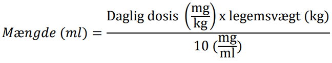 Startdosis ved behandling er ca. 2 mg/kg. Dosistitrer i forhold til den individuelle respons som lægges fast gennem monitorering (se nedenfor). Hvis det er nødvendigt at øge dosis, trappes den daglige dosis langsomt op.